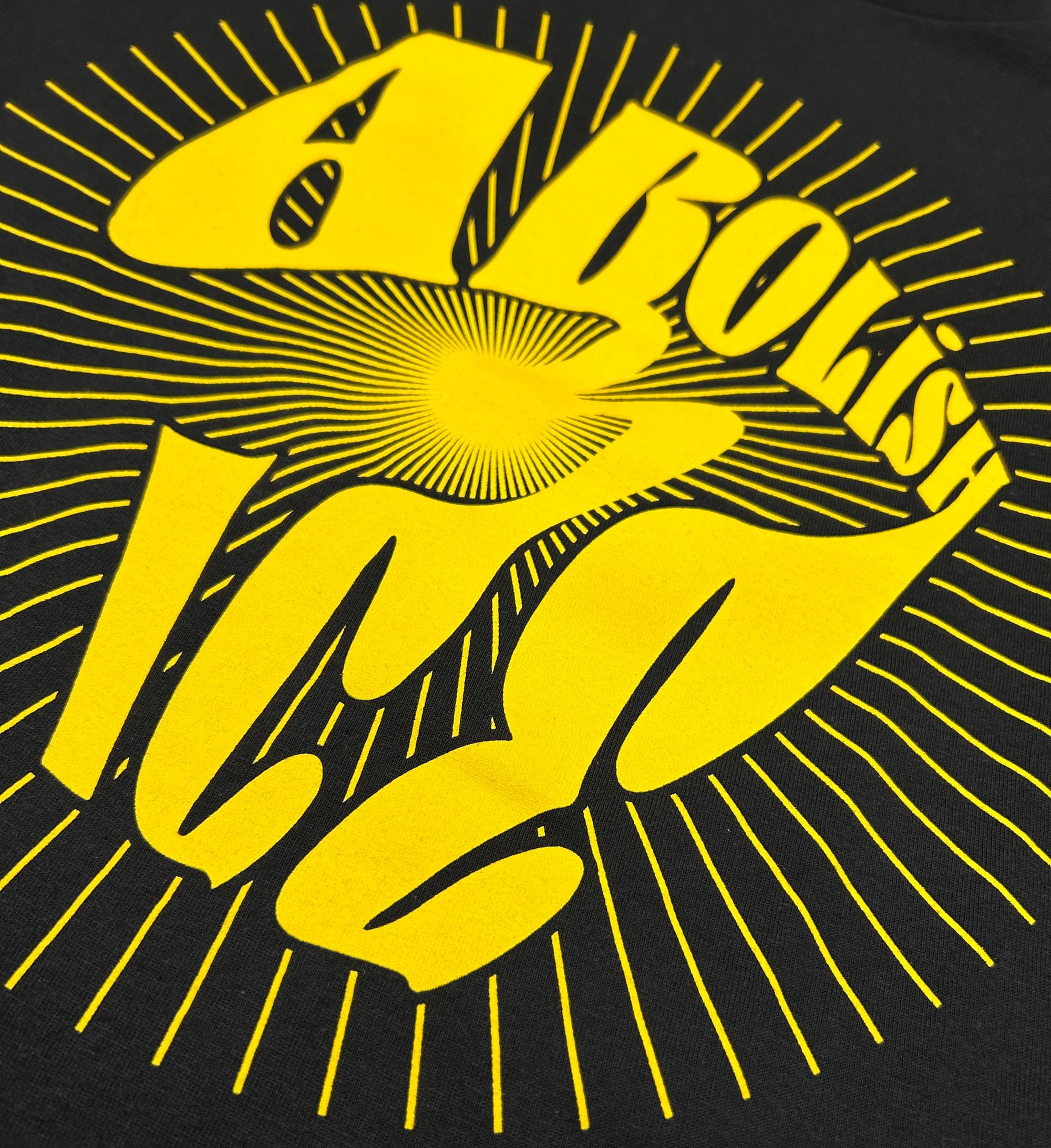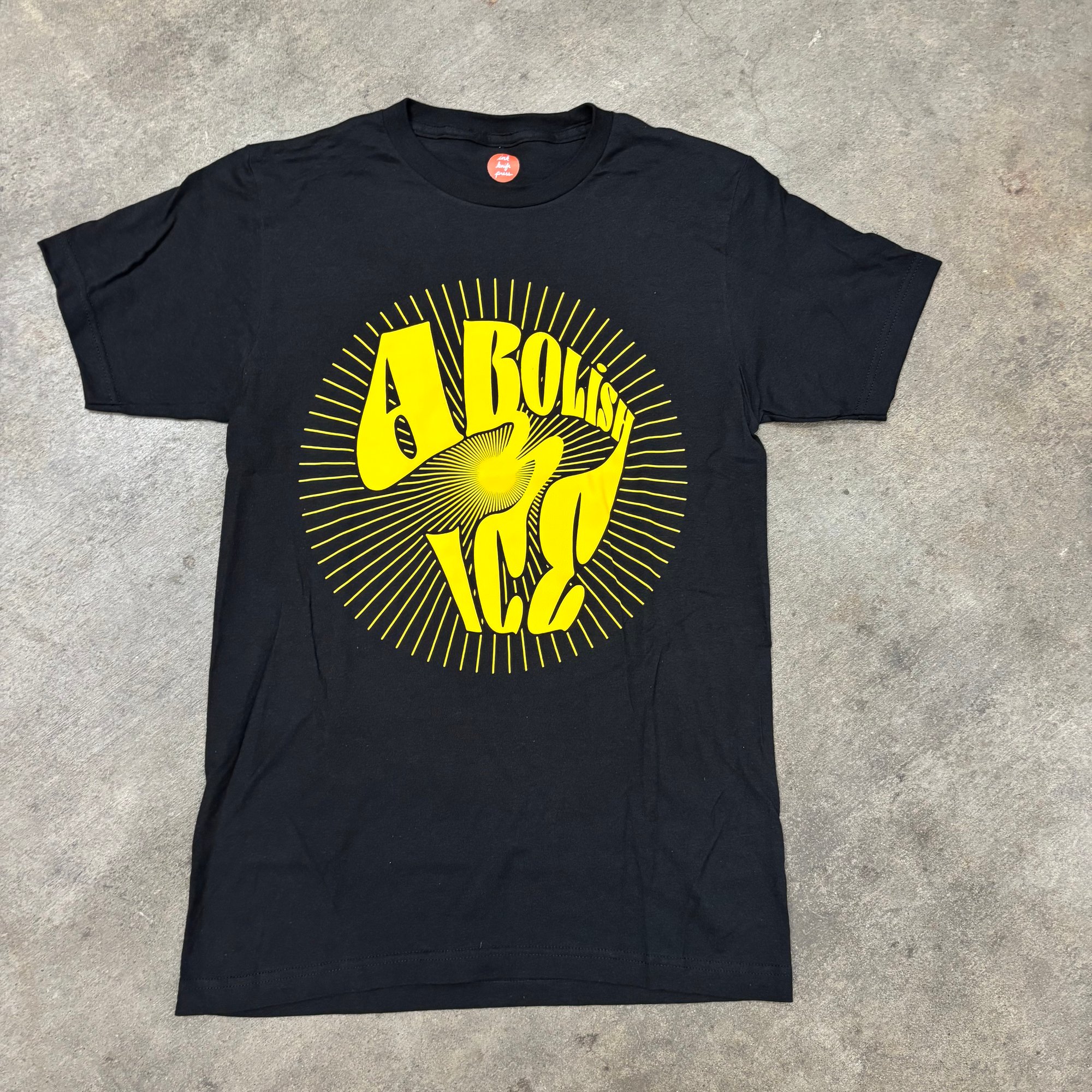 ABOLISH ICE! Opaque yellow high solids water based ink on black 100% cotton tees Price includes US Shipping